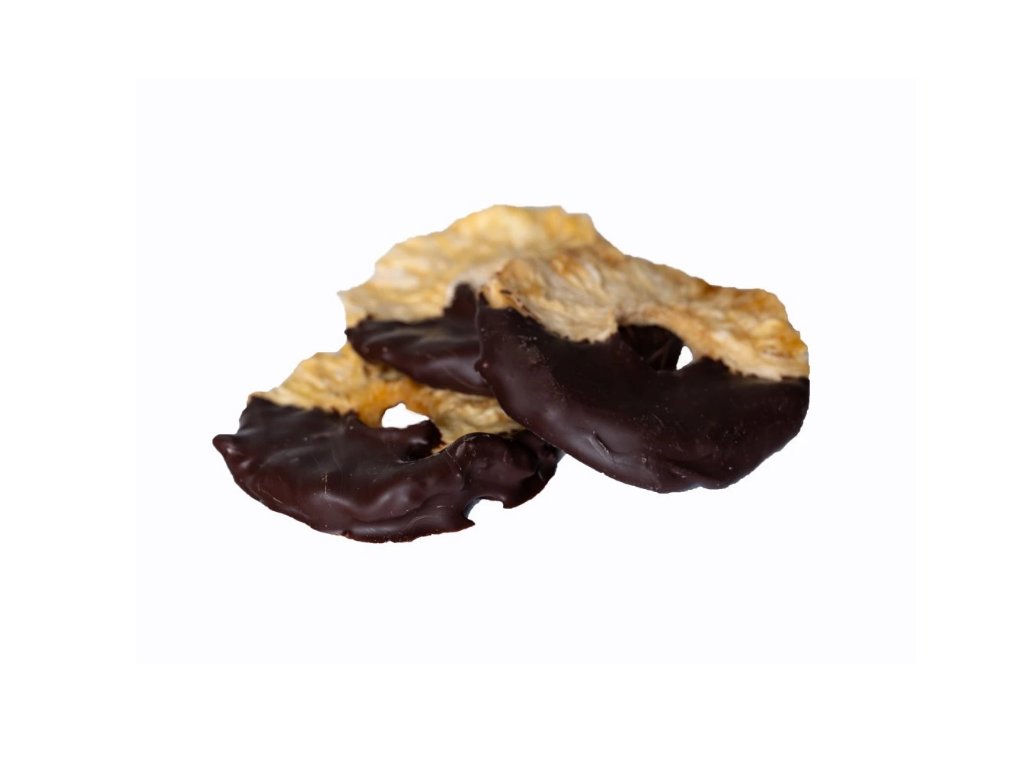 Tropická svěžest v elegantním kabátku! Šťavnatý sušený ananas obalený v prvotřídní belgické hořké čokoládě přináší harmonii sladkosti a intenzivní kakaové chuti. Perfektní volba pro milovníky výrazných kombinací!