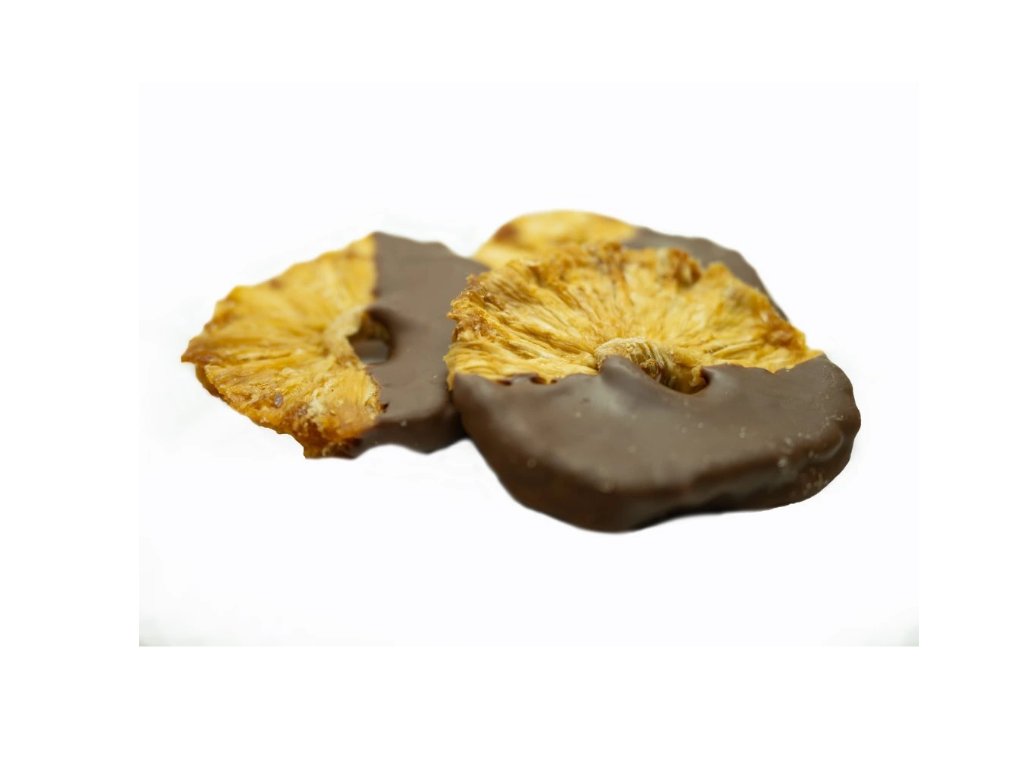 Tropická svěžest ve sladkém kabátku z mléčné čokolády! Šťavnatý sušený ananas obalený v prvotřídní belgické hořké čokoládě přináší harmonii sladkosti a extra jemné čokoládové chuti. Perfektní volba pro milovníky výrazných sladkých kombinací!