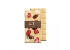 Tabulková bílá čokoláda s lyofilizovaným pomerančem.