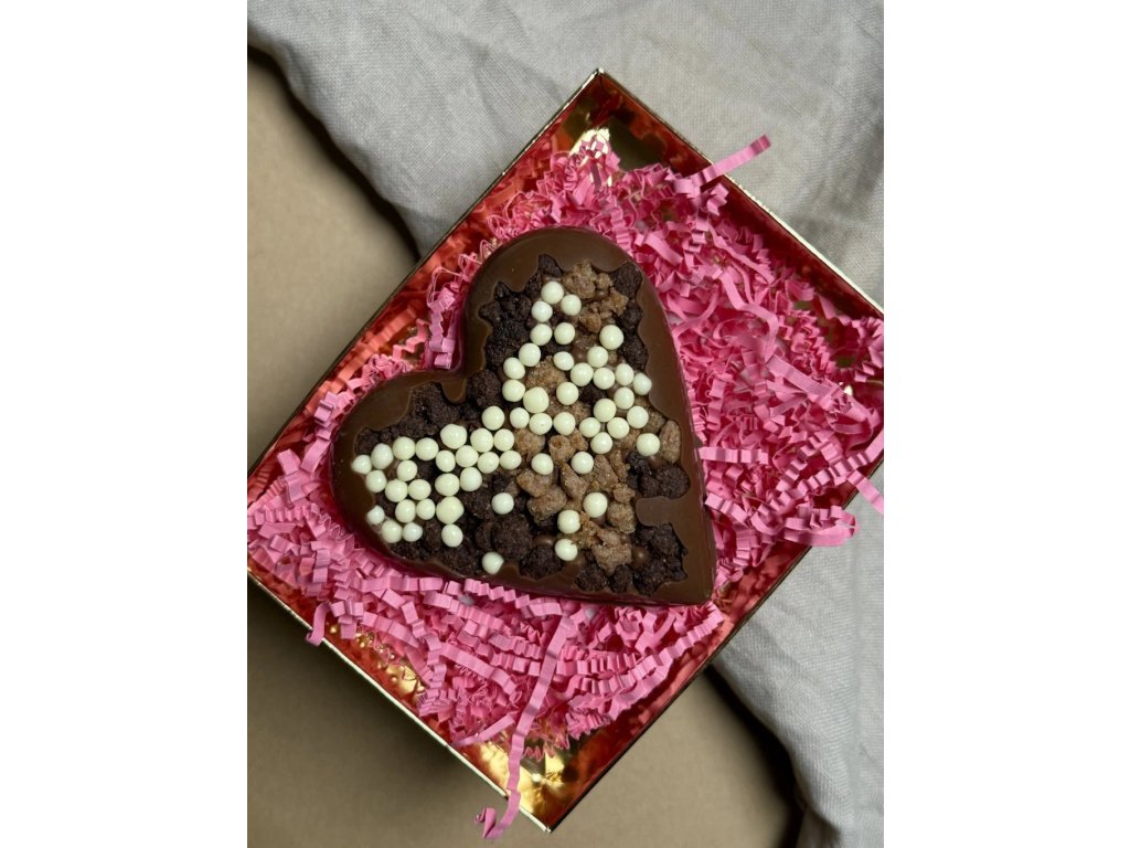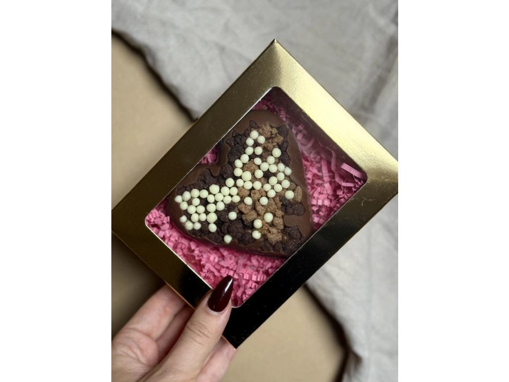Roztomilé srdíčko z lahodné sametově jemné čokolády, které je navíc krásně zabalené v nádherné dárkové krabičce.