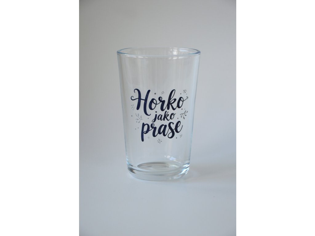 Čirá sklenice s vtipným popiskem "Horko jako prase" je vhodným dárek ať už pro vaše známe, nebo pro vás samotné .